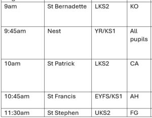 2:30pm Celebration of the Word EYFS/KS1 TD (Note change of time = change of time for C1 PE)